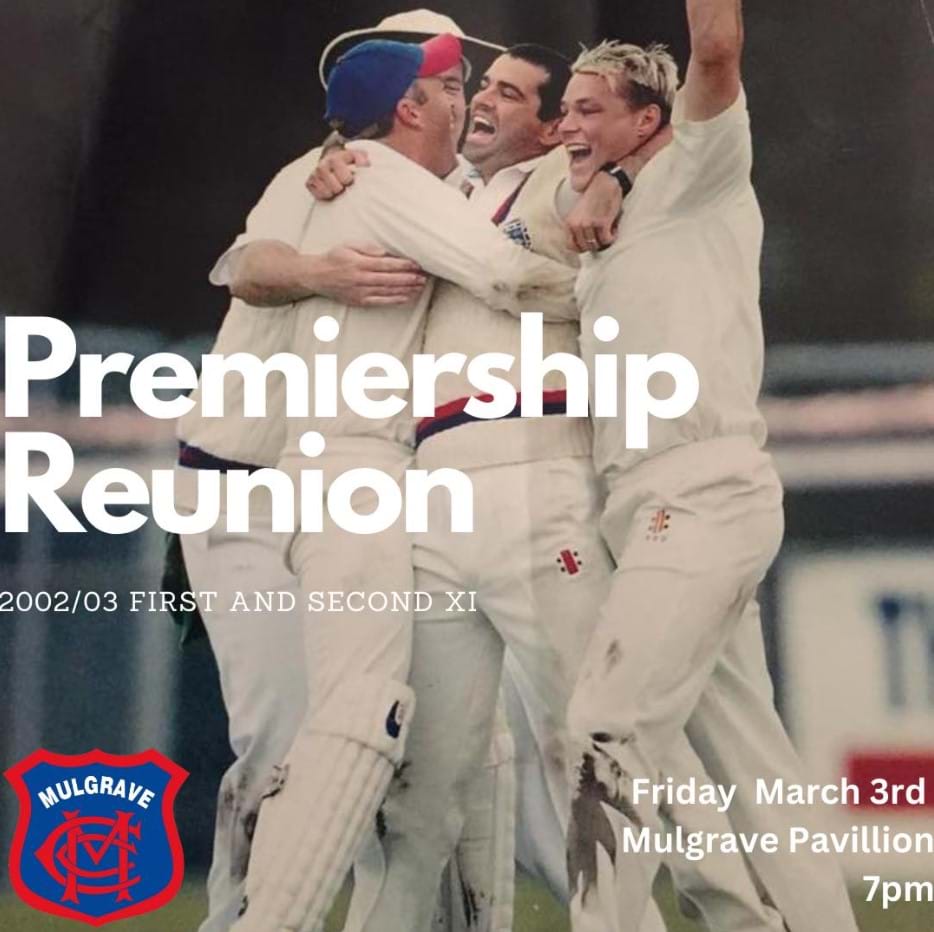 On Friday 3rd March 2023 the Mulgrave Cricket Club marked the reunion for our 2002/03 Premiership sides from Dunston Shield and B-Turf (1st + 2nd XI teams). This was the first of our five successive Dunstan Shield grand final wins - a feat that has never been replicated in the history of the competition.
