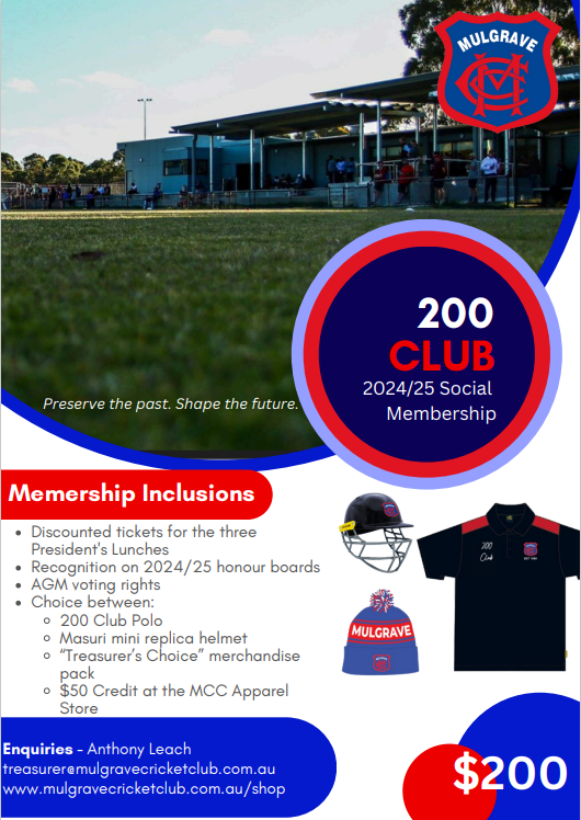 The new season is fast approaching and we are delighted to again present the Mulgrave Cricket Club 200 Club membership offer.